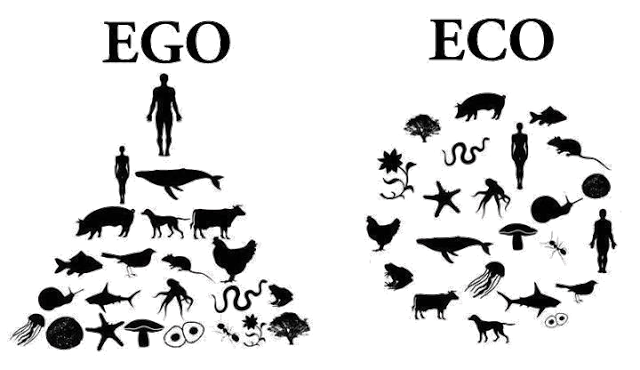 L'Ecocentrismo vede dunque l'Uomo posizionato tra le altre specie, e non al vertice di una gerarchia non realmente presente in Natura ma di invenzione umana.