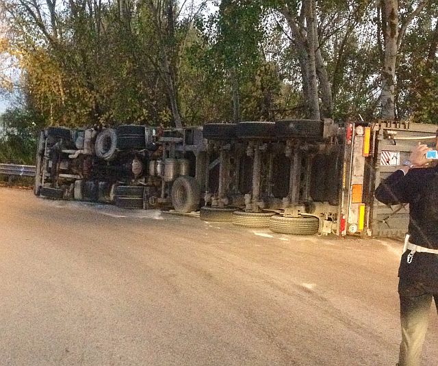 Un camion con cisterna, il quale trasportava scarti industriali, si è ribaltato nel pomeriggio di oggi, giovedì 7 novembre, a Ponte a Egola, frazone di San Miniato, in via Leonardo da Vinci, mentre stava percorrendo la rotatoria nelle vicinanze dello svincolo della superstrada Firenze-Pisa-Livorno di Santa Croce sull'Arno.