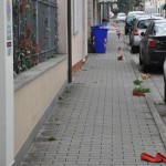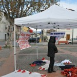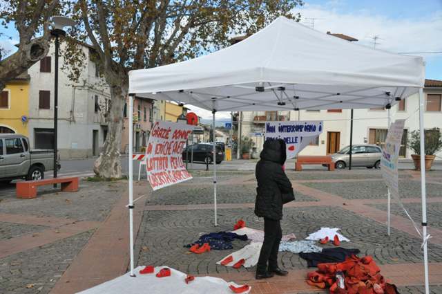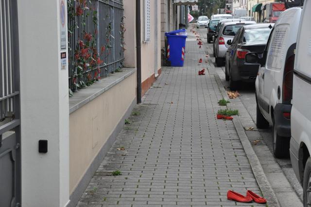 A Staffoli molti cittadini hanno aiutato spontaneamente la professoressa Lotti a montare l'istallazione e a stendere scarpe, sandali e stivali rossi sulla piazza e sui marciapiedi adiacenti.