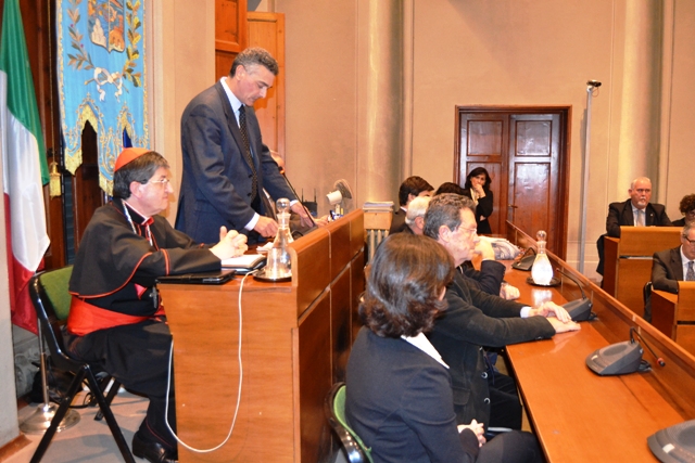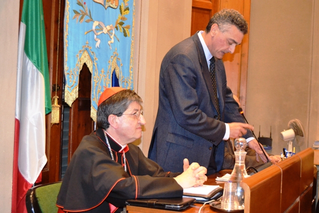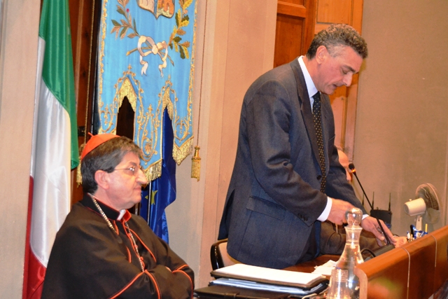 Ad accogliere il cardinale c’era, in fascia tricolore, il vicesindaco Carlo Pasquinucci assieme ai membri della giunta e buona parte del consesso elettivo. Buona anche la presenza di pubblico con alcune decine di persone ai margini per ascoltare.