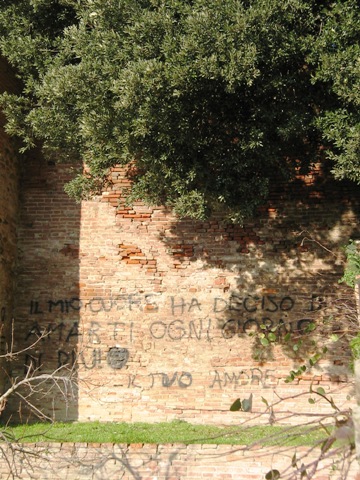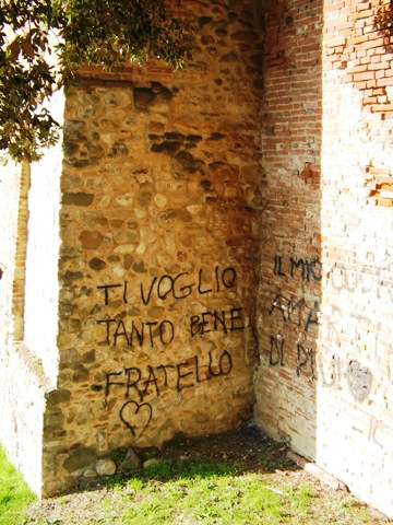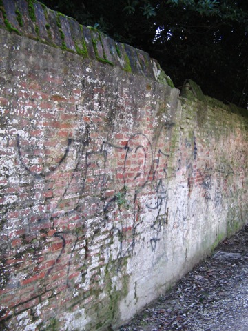 Il giardino storico, che rappresenta la perla del parco è abbandonato e preda di atti vandalici e deturpazioni: si abbattono muri, si divelgono parapetti e cimase in cotto, si scrive con bombolette spray  in ogni dove, le siepi crescono a dismisura e gli alberi non sono curati, l’illuminazione a terra è da tempo distrutta, così come le cassette degli idranti antincendio. Non appena si appronta un qualche ripristino, con esborso di danaro pubblico sottratto ad altre emergenze, dopo qualche giorno siamo a costatare la nuova devastazione. D’altra parte l’accesso è libero e non sorvegliato; non conosco altri Comuni che abbiano un giardino storico aperto alle scorribande notturne e diurne. Il giardino storico all’interno delle mura medioevali con le relative torri, a mio avviso deve essere chiuso nelle ore notturne e quando aperto deve essere sorvegliato. La video sorveglianza con telecamere tanto reclamizzata dal Sindaco è stata un flop, così come la sorveglianza affidata all’Auser.
