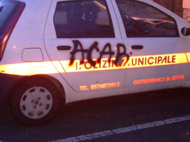 "La scritta è il prodotto dell'attività di qualche delinquente che si e' divertito a dar prova delle proprie capacita' grafiche. Colpisce e da noia non solo e non tanto per il valore del danno prodotto, che pure esiste: pensiamo a quanto occorrerà' per togliere la scritta. L'autore del gesto ha voluto colpire anche un simbolo. La scritta sta probabilmente per all cops are bastards". Infatti sta scritto la sigla Acab.