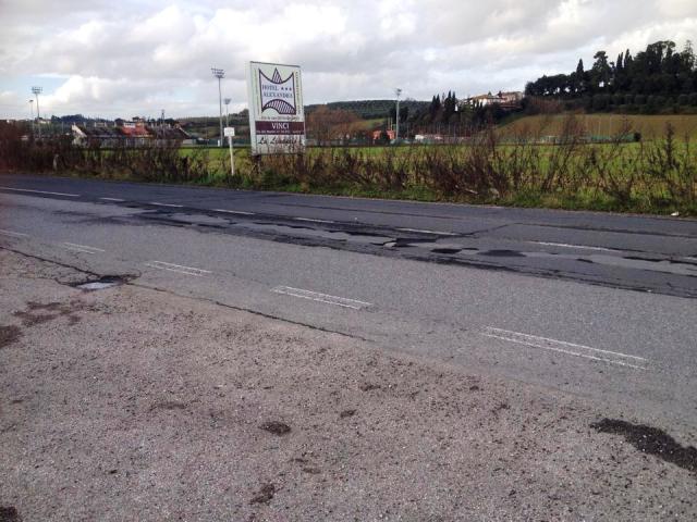 "Ci sono asfalto sgretolato e buche che possono non solo danneggiare le ruote dei mezzi, ma anche provocare cadute dei mezzi a due ruote - scrive un lettore di gonews.it - Il problema è molto evidente sopratutto in direzione Empoli, dove per cercare di evitare le irregolarità più grosse è necessario spostarsi pericolosamente al limite esterno della carreggiata".