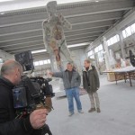 Mattinata all'insegna della televisione a Studi d'Arte Cave Michelangelo, il laboratorio di scultura di Franco Barattini.