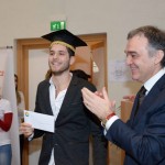 Poi, sempre accompagnato dal preside Alessandro Frosini, suo compagno di infanzia a Pontedera, ha consegnato il diploma al primo dei premiati, Niccolò Ceccarini, che ha vestito una americanissimo "Tocco", il cappello nero a quattro canti da diplomato, sulle note di "We are the champions". Poi spazio a tutti gli altri diplomati 2013 con il massimo dei voti.