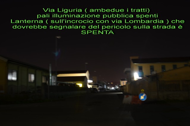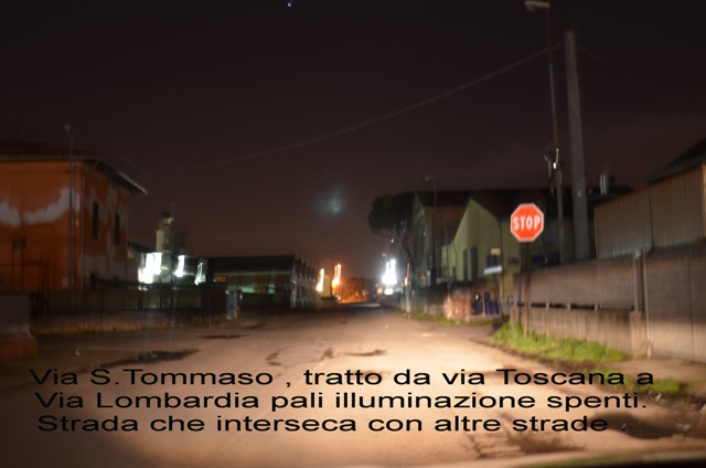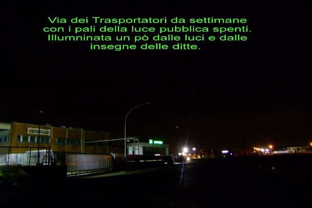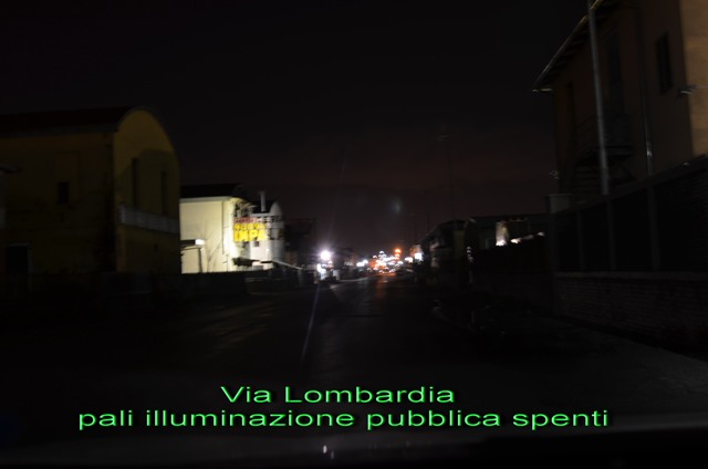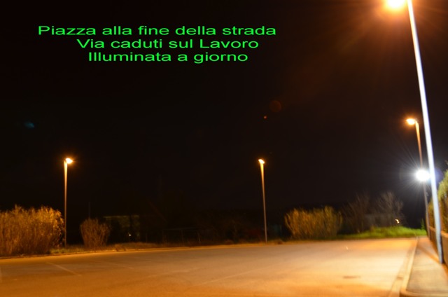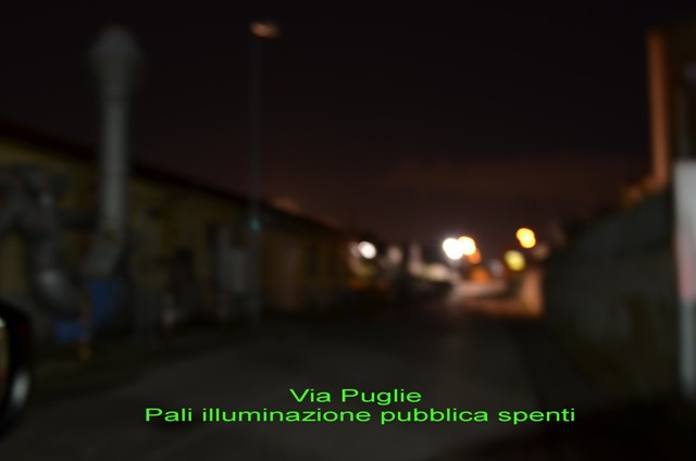 Visto che volevo scattare delle foto come faccio sempre per testimoniare di quello che dico è vero, sono andato un pò in giro anche per la zona industriale. Non mi sono sorpreso più di tanto quando ho visto che via dei Trasportatori è ancora al buio e sono settimane che lo è. Poi ho trovato via Lombardia, via XXV Luglio, Via Liguria, Via Puglie, tratto di Via S. Tommaso, tratti di Via S. Andrea , Piazza Oscar Romero ( piazza adiacente al palazzetto dello sport) tutte al BUIO!!! E da quello che ho sentito le strade sono al buio da un po’ di tempo.