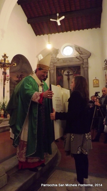 Al momento dell’offertorio la vivace comunità pontormese ha offerto al Vescovo una foto che rappresenta la statua della Madonna Addolorata che è all’interno della chiesa, simbolo di una comunità che vuole camminare verso Gesù insieme a Maria.