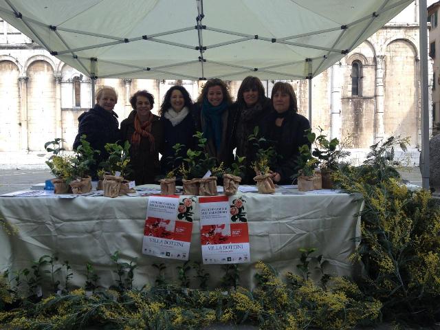 Grande partecipazione all’iniziativa realizzata questa mattina in piazza S.Michele a Lucca in occasione dell’8 marzo e nell’ambito della Mostra delle Antiche Camelie della Lucchesia, dal Comune di Capannori, dalla commissione pari opportunità, dal centro culturale Compitese e dal Comune di Lucca.