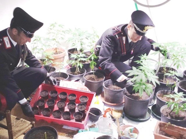 Oltre a circa 50 piante di marijuana, di diverse dimensioni, all’interno dell’abitazione i carabinieri hanno rinvenuto semi, stupefacente già essiccato, fertilizzanti, vasi, palette altro materiale normalmente usato per il giardinaggio e l’irrigazione, nonché ventilatori e lampade alogene adoperate per garantire alle piante, sebbene in un ambiente chiuso, un’adeguata areazione e illuminazione.