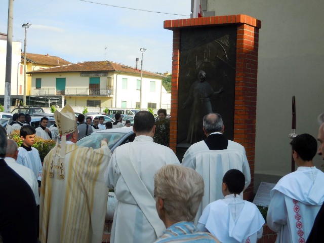 Di fronte alla chiesa gremita, Don Luciano Niccolai e Gino Mazzoni hanno ripercorso il forte sentimento affettivo che da sempre ha legato la comunità parrocchiale di San Miniato Basso alla figura del “Papa Buono”. Un legame che si è manifestato anche attraverso le opere d'arte firmate da Alberto Sparapani, apprezzato scultore carrarese, scomparso nel 2004. Si tratta del bassorilievo e del busto, entrambi in bronzo, descritti e illustrati dalla critica d'arte Enrica Frediani. La commissione delle opere, così come la realizzazione del monumento antistante la chiesa, furono due momenti di grande aggregazione per la comunità di San Miniato Basso, e a cui contribuirono in maniera determinante anche Don Vinicio Vivaldi e il Dott. Claudio Gagliardi, oltre allo stesso Gino Mazzoni, amico personale dello scultore.