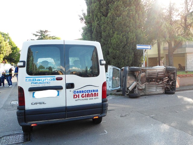 Spettacolare incidente con un ferito nel tardo pomeriggio di oggi, martedì 13 maggio, a San Donato di San Miniato. Traffico pesantemente compromesso intorno alle 18.30 quando, all’incrocio tra le vie Romaiano e Cilea si sono scontrati un furgone e una Fiat 500, la quale si è ribaltata.