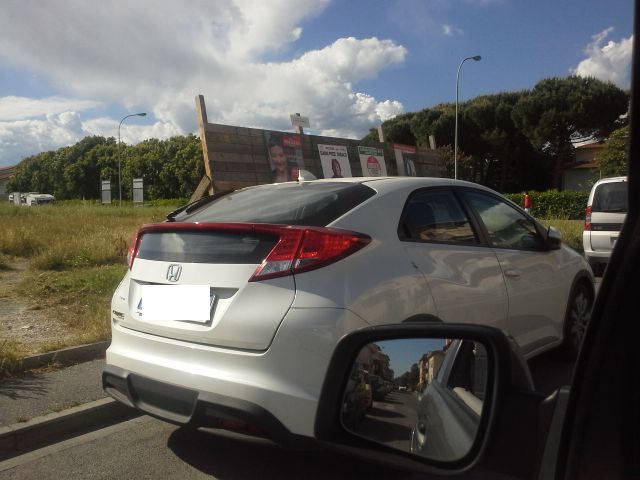 a Sovigliana fronte strada, ma dietro degli stalli di parcheggio e in una via dove non ci si può nemmeno soffermare perché a carreggiata unica;