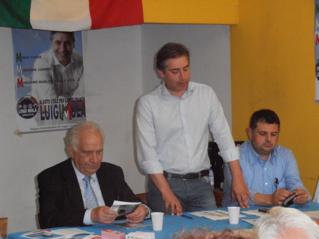 I tre candidati oltre che promuovere la propria candidatura alle elezioni per il rinnovo del Parlamento Europeo sono intervenuti a sostegno del candidato sindaco Luigi Mola a capo della lista civica “Comunità e futuro”.