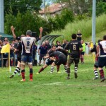 Il modesto spettacolo del primo tempo – tanti errori, tanti falli, gioco spezzetato – viene riscattato dalla ripresa almeno sul lato emozionale. Banca Cras comincia bene, piazzandosi in attacco e al 7’ torna in vantaggio con Mondet (12-13). Quando il match sembra incanalarsi a favore degli ospiti esce invece di prepotenza Gubbio, che piazza un micidiale parziale di 14-0 in quattro minuti. Al 13’ Romano serve con un bel cick-cross Bianco che riesce a recuperare l’ovale e a deporre in meta. Quattro minuti dopo, i senesi mal gestiscono un ovale nei propri 22 e consentono un paio di rabbiose percussioni ai padroni di casa: da un raggruppamento esce prepotentemente il poderoso estremo Fuina che va dentro (26-13). Il Coppiolo esplode di entusiasmo. Siena è frastornata, sembra incapace di reagire all’aggressività messa in campo dai padroni di casa. Ma dopo alcuni minuti, finalmente, il XV di Ferluga inizia a giocare, confusamente, a dire il vero, ma perlomeno con veemenza e determinazione. Prima spreca due lanci in touche sui 5 metri; poi costringe a una serie di falli ripetuti gli umbri. L’arbitro ne caccia due dal campo in rapida successione. Con una doppia superiorità Siena si rifà sotto: prima Duprè (31’) e poi Mondet (40’) riportano i bianconeri a un niente dal sorpasso. Gubbio sembra sul punto di inabissarsi. Gli ultimi minuti sono giocati in apnea da entrambe le squadre, che cercano il tutto per tutto. Gubbio, recuperati i due ammoniti, produce l’ultimo sforzo per togliere il bonus difensivo a Siena, fin negli ultimi istanti. Senza però riuscirvi.