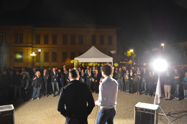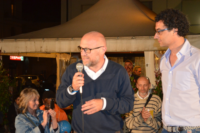 L’incontro – dibattito in piazza della Libertà è cominciato intorno alle 22, momento in cui in piazza Boccaccio cominciavano le prime note musicali per sostenere la candidatura di Cucini.