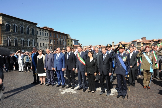 Le celebrazioni sono iniziate in mattinata con la cerimonia dell’Alzabandiera sul Ponte di Mezzo, alla presenza del Sottosegretario alla Presidenza del Consiglio Luca Lotti. Oltre al Prefetto Francesco Tagliente, al Sindaco di Pisa Marco Filippeschi e al Presidente della Provincia Andrea Pieroni, erano presenti i deputati Maria Chiara Carrozza, Paolo Fontanelli, Maria Grazia Gatti , Federico Gelli, insieme ai Sindaci degli altri comuni della provincia e ai rappresentanti delle Forze e dei Corpi di Polizia e degli Uffici statali.
