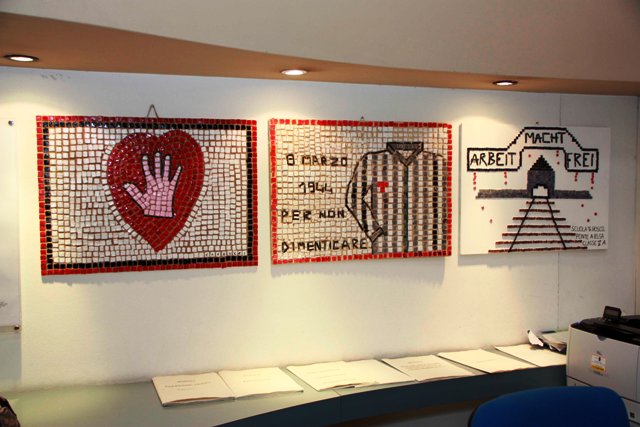 La mostra – che ha come tema principale i campi di sterminio e le violenze subite dagli ebrei durante la seconda guerra, ma anche mosaici che rimandano alla speranza e alla fratellanza - è stata realizzata dagli alunni delle 19 scuole primarie empolesi, grazie alla preziosa collaborazione dei ragazzi di Cerbaiola, i quali hanno realizzato tutte le tessere che compongono i 14 mosaici, usando del materiale donato dalla Colorobbia.