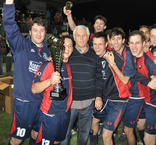 San Bartolomeo, vincitore dell'edizione 2013 del torneo, subito dopo la consegna della coppa da parte del presidente del Comitato Palio Paolo Nuti