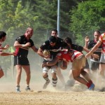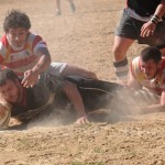 Ma andiamo con ordine. Si inizia alle 15.30 in punto. Sole africano e tribuna piena. Centumcellae Civitavecchia, molti giocatori esperti, un recente passato in serie B, avvia il match con una confidenza che i tanti dei giovani di Ferluga si sognano. Il mediano d’apertura laziale Coppeto, fosforo in abbondanza nonostante qualche chilo di troppo, muove il suo XV con l’autorità di un direttore d’orchestra.