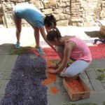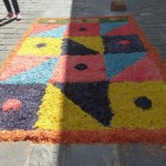 Disegni multicolori, per i quali sono stati utilizzati migliaia di petali di rosa e ginestra e frammenti di fogliame, hanno ricoperto quasi interamente la via principale a formare dei lunghi e prospettici tappeti profumati.