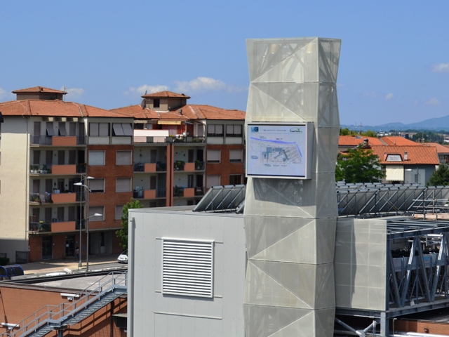 Sopra il parcheggio esterno degli utenti è stato realizzato un pergolato fotovoltaico a servizio dell’intera struttura ospedaliera. Il pergolato, oltre a produrre energia da fonti rinnovabili per il presidio, offrirà il vantaggio di un luogo di sosta ombreggiato per le auto, con un notevole miglioramento del confort.