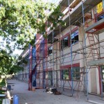 Prima tappa la scuola Kassel, interessata negli ultimi anni da copiose infiltrazioni d’acqua piovana che hanno compromesso il corretto svolgimento delle attività didattiche, dove sono in corso i lavori per il rifacimento della copertura: i lavori, iniziati con la chiusura delle scuole, hanno interessato l’ala dell’edificio occupata dalla scuola dell’infanzia, l’ala della scuola elementare in via Svizzera e la zona destinata ad uffici dell’istituto comprensivo e consistono nella rimozione e nello smaltimento della vecchia impermeabilizzazione e nella realizzazione della copertura in lamiera grecata metallica costituita da lastre di lunghezza pari alla falda da coprire. Sulla copertura degli uffici invece la vecchia impermeabilizzazione è stata sostituita con un doppio strato di guaina e la realizzazione di massetto alleggerito per la formazione di pendenze.