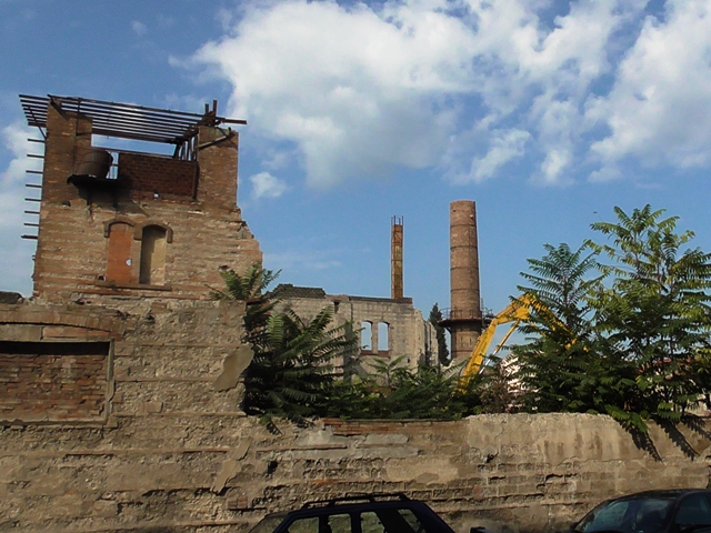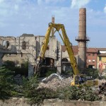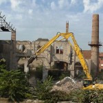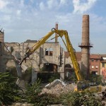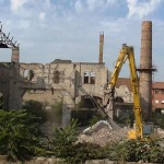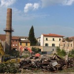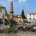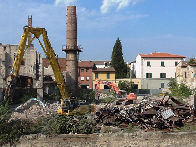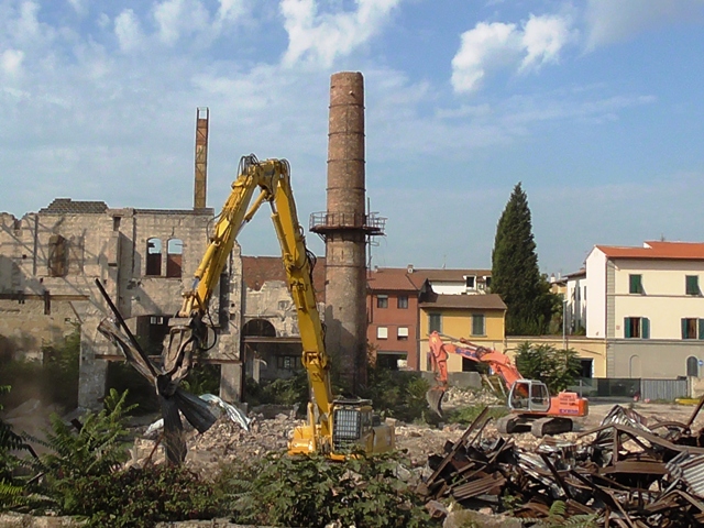 La demolizione della ex Vitrum di Empoli, lunedì 6 ottobre 2014 (foto gonews.it)