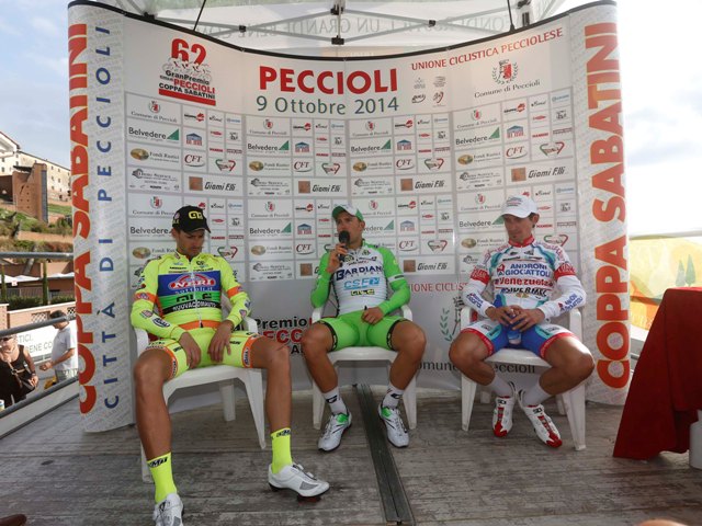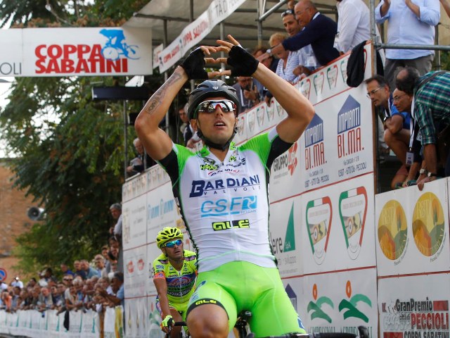 Sonny Colbrelli è il vincitore della 62^ edizione del Gran Premio Città di Peccioli – Coppa Sabatini. Sul prestigioso traguardo di Peccioli, il corridore della Bardiani Valvole – Csf Inox ha preceduto Mauro Finetto (Neri Sottoli – Alé) e Franco Pellizotti (Androni Giocattoli – Venezuela).