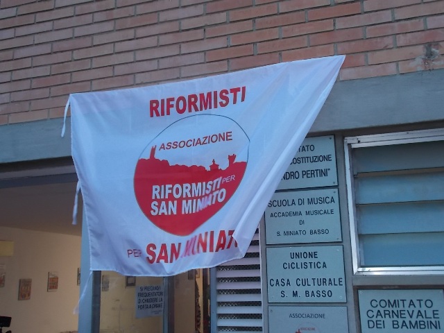 Riformisti per San Miniato - La lista civica, di ispirazione riformista, alle elezioni comunali di maggio 2014 ha riscosso il 4,48 %. L'esperienza non è finita qui: i candidati consiglieri hanno deciso di legarsi in associazione. La loro sede è all'interno della casa culturale di San Miniato Basso, in via Pizzigoni, assieme a quella del Partito Democratico e di molte altre associazioni del territorio.