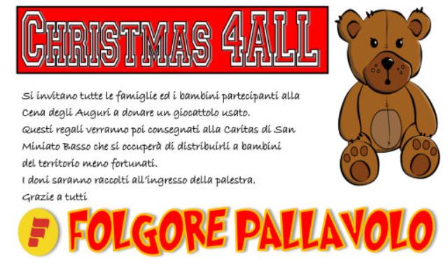 La Folgore Pallavolo San Miniato alla Cena degli Auguri di Natale svoltasi il 21 Dicembre ha organizzato l'iniziativa Chrismas 4 All.