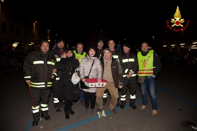 La Befana è stata trasportata dal balcone di un appartamento dai Vigili del Fuoco tramite un cestello elevatore di un nuovo automezzo, consegnato recentemente al Comando Provinciale di Firenze. Dopo la consegna dei dolci ai bambini e l’arrivo della squadra operativa giunta dal vicino distaccamento di Fi-Ovest, è stato dato fuoco al fantoccio della Befana.