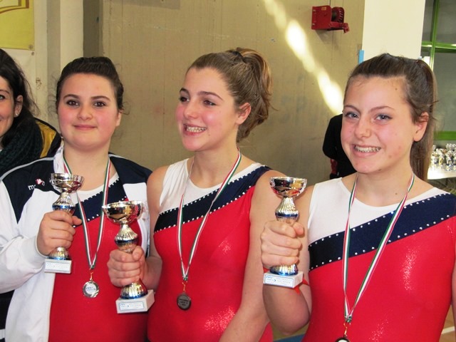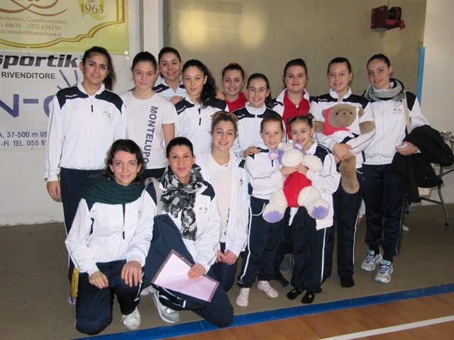 Molto bene alla Trave entrambe (M.14,350 T. 14,400); buono anche il Corpo Libero (M.14,050 e T.14,200); alle Parallele meglio la Montalbano 13,00 della Toccafondi 12,800; infine 13,700 entrambe al Volteggio, un punteggio non molto elevato rispetto alla media della gara. Martina Toccafondi è stata un po´ sottotono, forse disorientata dalla differenza tra gli attrezzi di allenamento e quelli di gara, sicuramente può fare meglio sin dalle prossime uscite; Martina Montalbanocontinua a migliorare, molto precisa e dimostra di aver lavorato bene sui suoi difetti. Dopo le Allieve è stato il turno delle Junior, che vedevano impegnata per l´Asp Montelupo, Marta Marinucci, che tornava alle gare dopo l´infortunio al braccio che le ha fatto saltare le nazionali lo scorso maggio. Marta ha fatto davvero un bel rientro, grintosa sicura e senza sbavature, classificandosi alla fine settima con il punteggio totale di 55,400, a mezzo punto dal podio. Questi i parziali agli attrezzi di Marta: 14,200 a Trave, 14,100 a Corpo Libero, 13,500 a Parallele e Volteggio. Molto soddisfatte le due istruttrici presenti a Scarperia, Corinne Tantalos e Agnese Bartolozzi.