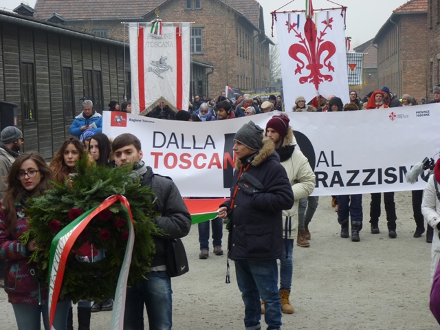 Durante la mattinata anche il corteo e la deposizione di una corona al muro della morte, dove venivano giustiziati i prigionieri dopo i processi sommari ai quali erano sottoposti.