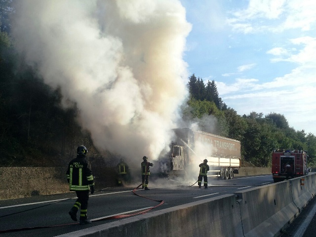 Il tir a fuoco in Fi-Pi-Li (foto gonews.it)