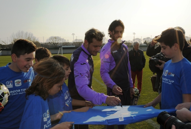 Reciproca emozione quella vissuta oggi pomeriggio a Firenze dai ragazzi della Junior TIM Cup – il torneo di calcio a 7 riservato agli under 14 promosso da CSI, TIM e Lega Serie A - e dai giocatori dell’ACF Fiorentina presso il centro sportivo dei viola, per un pomeriggio all’insegna dei valori più genuini che il gioco del calcio riesce a trasmettere.