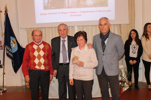 I quattordici nuovi donatori premiati sono Daniela Cabras, Carlo Martucci, Vasile Mitrofan Sorin, Massimo Pini, Francesco Salimbene, Andrea Bensi, Matteo Cannucci, Carmela D'Ambrosio, Maria Gama De Sousa Noia Celma, Beatrice Palei, Alessandra Partenzi, Matheus Sousa Noia Phelipe, Sylwia Szwalek e Marco Lorenzetti. Il riconoscimento per le 15 donazioni è andato a Pierluigi Cabras, Giuseppe D'Ambrosio, Rosaria Minelli, Chiara Mugelli, Alessia Pallanti, Salvatore Pitzeri, Arturo Giuliano, Maurizio Riccucci, Patrizia Fosi, Marco Masignani, mentre per le 25 donazioni effettuate sono stati premiati Lamberto Furi e Andrea Rondini. Tre i donatori che hanno lasciato per raggiunti limiti di età, Carlo Belleschi, Vilma Dionisi e Carlo Pianigiani, salutati nel corso della cerimonia che ha ripercorso oltre 40 anni di storia del Gruppo Donatori di Sangue Fratres di Pievasciata, segnati da un impegno costante e crescente in termini di solidarietà, amicizia e socializzazione.