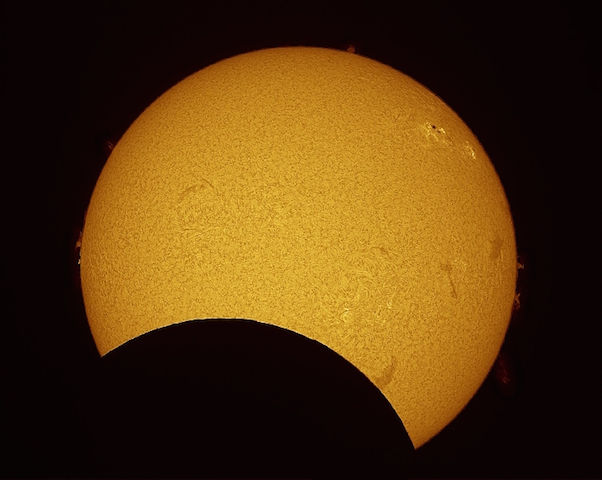 Il fenomeno, visibile anche alle nostre latitudini, inizierà alle 9.23 con il primo contatto del bordo lunare sulla superficie del sole. Raggiungerà l'apice della copertura alle 10.31, ed il 59 % della nostra stella oscurata, per poi concludersi alle 11:43, con il definitivo transito del nostro satellite.