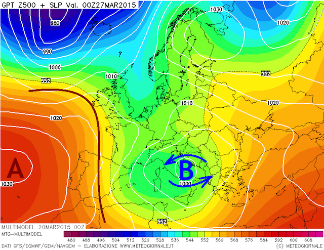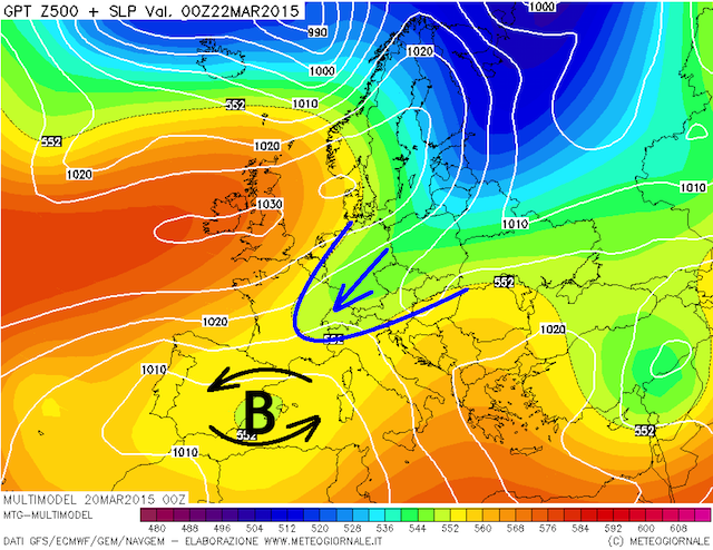 Con il pomeriggio del giorno festivo, il nucleo depressionario inizierà a scivolare verso Sud, per poi rimanere nuovamente bloccato sul lato Occidentale del Mediterraneo, a causa di un rialzo dei geopotenziali sull'Europa Centrale nella giornata successiva di lunedì, liberando la nostra regione dall'influsso instabile dei giorni precedenti. Si tratterà di una fase illusoria, visto che già da martedì mattina, le condizioni meteo, torneranno a farsi instabili, a tratti perturbate, con l'avvicendarsi in sede mediterranea di un profondo minimo barico, che avrà gioco forza nel riunire la 'vecchia' depressione, con il minimo barico in formazione, tra la Corsica e la Toscana.