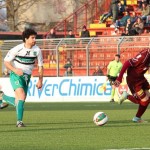 Partita nervosa e non avvincente quella tra Pontedera e Tuttocuoio, ma che sorride ai neroverdi con il gol di Serrotti a 11 minuti dal triplice fischio. Protagonista, stavolta in negativo, Colombo, che si fa espellere e lascia la formazione di Ponte a Egola in 10 uomini al 22'. Vettori 'pareggia' il conto e viene espulso all'82'. Ed è proprio l'assenza del difensore granata che fa trionfare la tribuna samminiatese al 'Mannucci' di Pontedera. Alla fine del tempo regolamentare anche Konate viene espulso e ristabilisce l'iniziale inferiorità numerica. Finisce con l'1 a 0 il derby: il Tuttocuoio continua la corsa per la salvezza a 41 punti. Di tre punti superiore il computo del Pontedera, in che ritorna in crisi dopo il pareggio a reti bianche contro l'Ascoli di mercoledì scorso.