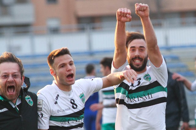 Molto più emozionante il match tra Carrarese e L'Aquila. Gli ospiti vincono per 2 a 1, e gli abruzzesi recuperano nella seconda frazione di gioco lo svantaggio del gol di Merini al 15'. Al 79' Perna pareggia i conti e dopo soli due minuti Pozzebon sigla il vantaggio. In classifica L'Aquila torna al vertice con 45 punti. A 38 la Carrarese rischia grosso.