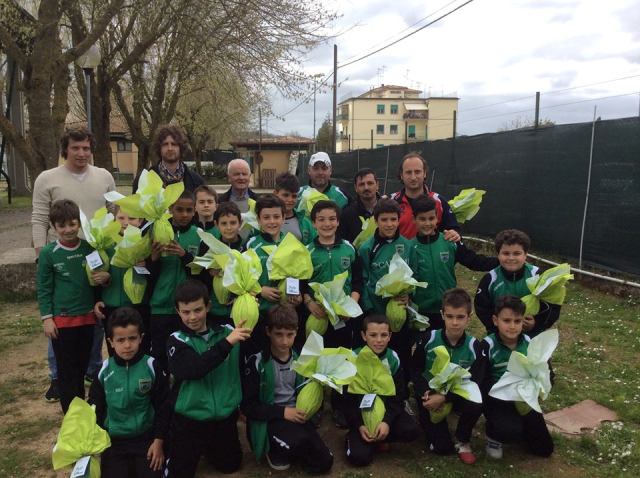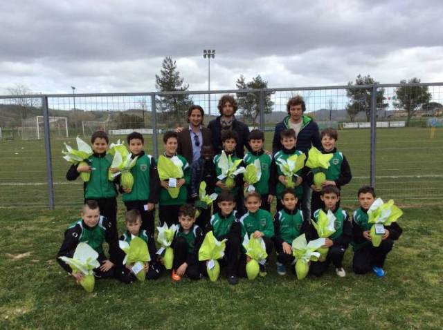 - Le uova di pasqua consegnate ai giovani calciatori del Tuttocuoio (foto da Facebook)