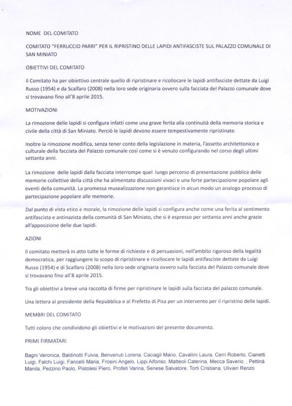 - Il comunicato della sezione Anpi di Montopoli – San Miniato sul Comitato permanente antifascista