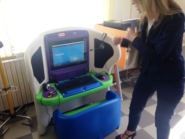 E' stata presentata stamani, venerdì 8 maggio, nei locali della biblioteca comunale 'Emma Parodi', la postazione interattiva Kid Smart. Particolare computer che presenta programmi e attività rivolte a bambini in età da scuola materna o primaria per fare le prime esperienze con le varie discipline didattiche attraverso l'aspetto ludico, per apprendere l'abc di matematica, scienze e molto altro ancora, tutto all'insegna del divertimento.