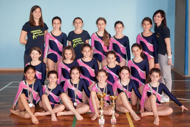 La prima, composta da Ciappi Sara, Nerla Greta, Pagni Gloria e Tiani Matilde, è riuscita a conquistare il 3° gradino del podio per la categoria Mini Prima 3 A, piazzandosi bene anche nella classifica individuale agli attrezzi: 3° posto a corpo libero per Nerla Greta, che sfiora la medaglia anche a trave e volteggio dove si piazza quarta; bene anche le altre atlete che non scendono mai oltre l’ottava posizione.