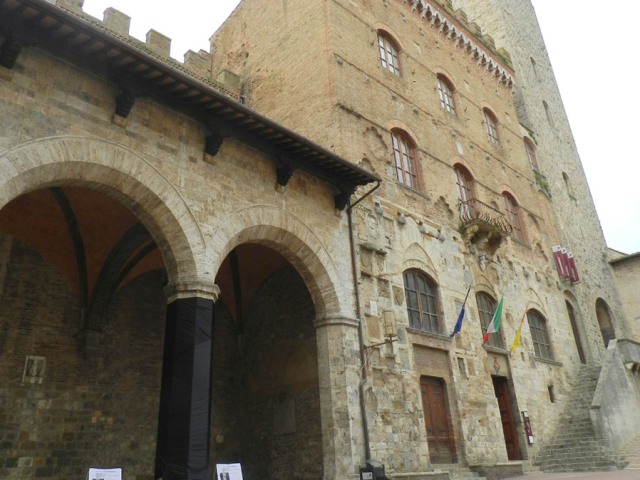 La Colonna centrale della Loggia del Popolo in piazza Duomo a San Gimignano listata a lutto contro le barbarie perpetrate dall’Isis in Medio Oriente ai danni dei beni storico-artistici. Così il Comune di San Gimignano, sito Unesco, ha aderito venerdì 15 maggio a #unite4heritage, la campagna mondiale in difesa dei patrimoni dell'Umanità.