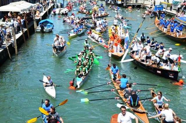 Ai ragazzi appena arrivati nella laguna si e' presentata una scena incredibile gia' alle ore 8.15 vi erano più di mille imbarcazioni presenti per poi arrivare alle ore 9 a duemila imbarcazioni. Ovviamente emozionati, i nostri ragazzi hanno atteso il colpo di cannone che da la segnale di via ai partecipanti per poi iniziare questa bella avventura vogando in modo ordinato.