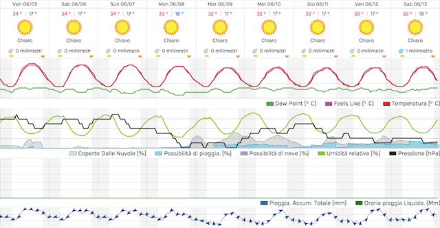 Arrivati a giovedì, l'ipotetica ferita barica tornerà a chiudersi rapidamente, con un pericoloso isolamento della goccia fredda residua, davanti alle coste portoghesi, responsabile come sappiamo bene della solita risposta anticiclonica africana. Nuovi rialzi termici quindi all'orizzonte e stavolta un più cospicuo contributo afoso, alle già calde giornate estive, destinato a perdurare ben oltre i soliti 5/7 giorni, stando alla concorde emissione modellistica.