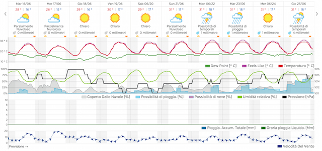 Quindi ancora bel tempo, salvo qualche rovescio sui rilievi ed un clima ancora gradevole, ovviamente considerando che saremo già entrati nella stagione astronomica, quindi piena estate a tutti gli effetti.
