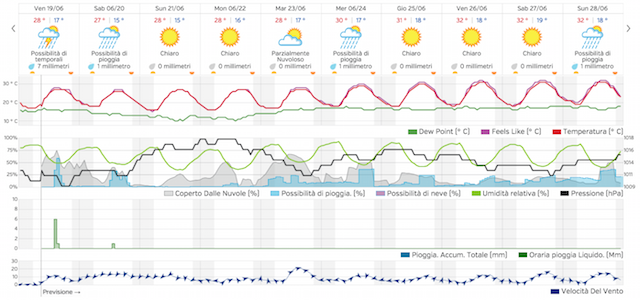 Chiusura dello step previsionale, probabilmente instabile, a causa di una saccatura atlantica in discesa verso il nord-ovest della penisola, anche se come è logico supporre vista la distanza temporale, vertono ancora dubbi e incertezze sulla esatta collocazione barica.
