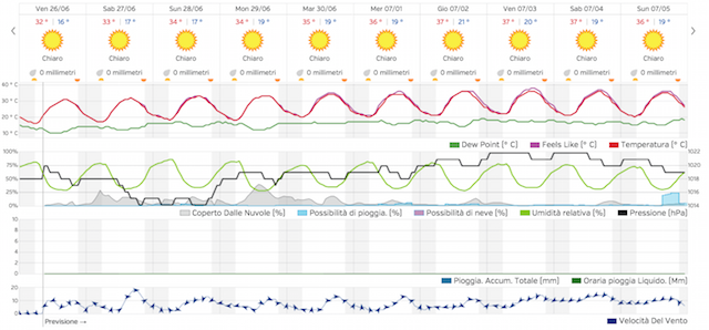 Stavolta non sarà così, e credo che, nemmeno il più incallito dei caldofili, sarà felice, sapendo che ci aspettano almeno 15 giorni, di temperature fuori norma e tassi umidi in continua ascesa...